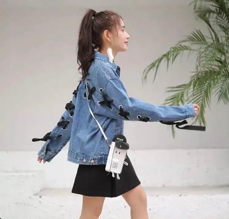 海外インポート 海外セレブ レディースジャケットデニムジャケット デニムアウター ジージャン Gジャン 韓国 韓国ファッション オルチャン おしゃれさんと繋がりたい 秋服 大きいサイズ 刺繍 フラミンゴ柄 リボンジャケット リボン