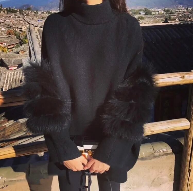 こちらは袖ファー付き♡2wayハイネックプルオーバーです(∩ˊᵕˋ∩)・*