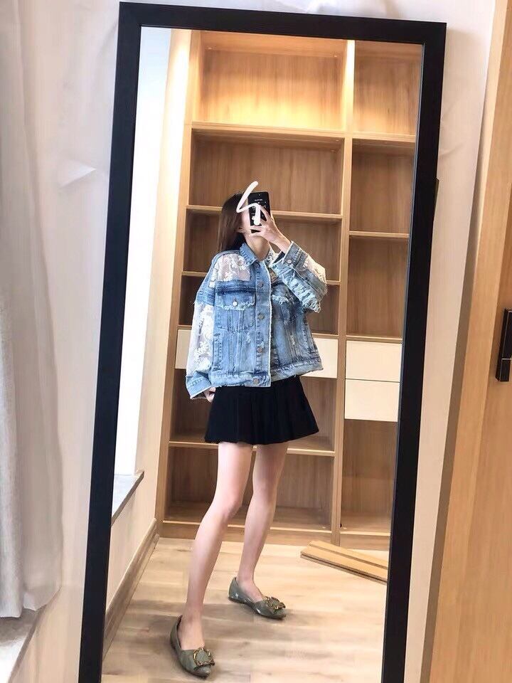 JK1【送料無料】2020春新作❤️オーバーサイズ 花柄シースルー デニムジャケット ジージャン デニムアウター ジャケット Gジャン シースルージャケット オーバーサイズジャケット ルーズジャケット ルーズアウター | yotsuha